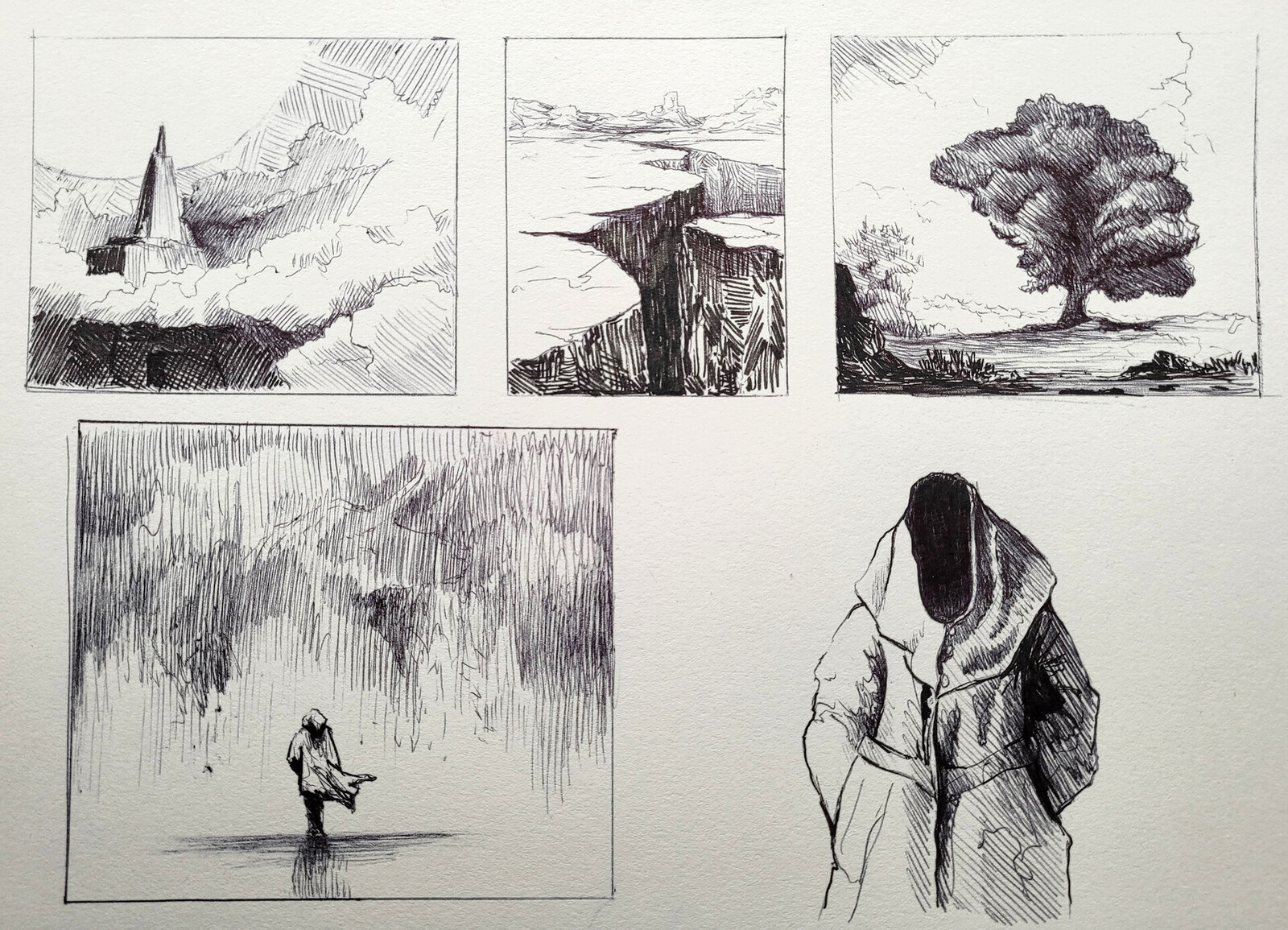 Collection of sketches I am doing on a daily basis to improve my conceptual and drawing skills. Tools used: Fineliners pens and Faber Castell's Pitt pens.